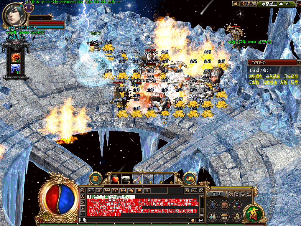 当然,作为内功版本之后特地开启的新地图它的主要作用就是给玩家升级内功。只要将这些雪域的BOSS都击杀后就能获得内功的经验和内功经验的加持效果,除此之外还有一种氪金的玩法,玩家们不停在雪域中打BOSS后就会获得天地结晶的效果,当这个效果累计到一定程度后就可以使用元宝点击释放经验和内功经验。这也大大加快了玩家们内功和等级的升级速度。不过既然是氪金的那肯定基本上就是大佬才做的,普通的散人玩家也就靠打里面的BOSS来增加自己的内功等级了。而且在雪域还能收获绿宝石之类的道具,这也是兑换内功技能和强化内功技能的原材料,在当时非常热门。
